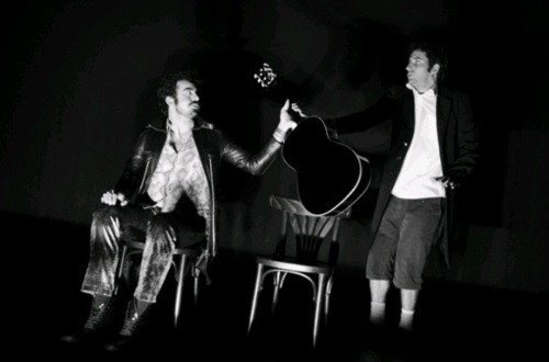 Dois atores, duas cadeiras, duas bananas e uma guitarra contam e cantam estórias a partir do seu universo pessoal. As estórias – assim como toda a ação – são ornamentadas com um trabalho depurado da palavra e do movimento, acompanhados pela musicalidade da guitarra e das vozes e artilhados de comédia, melodrama, clown, poesia e uma relação ímpar com o público".