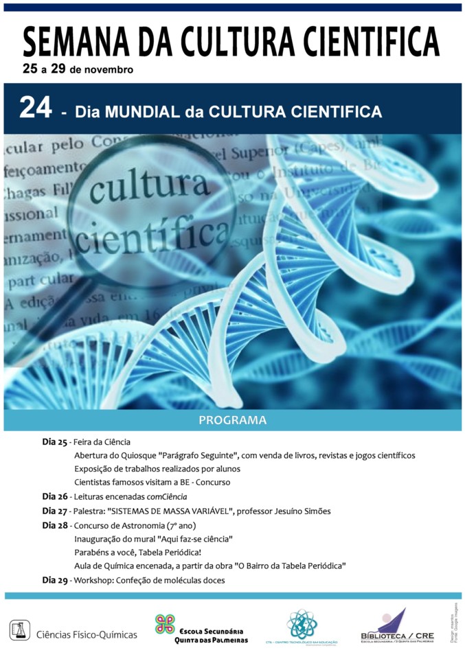 No âmbito da semana da Cultura Científica, estão a ser desenvolvidas atividades do agrado de todos os que visitam a BE. A Tabela periódica, como não podia deixar de ser, é “rainha” nesta semana.