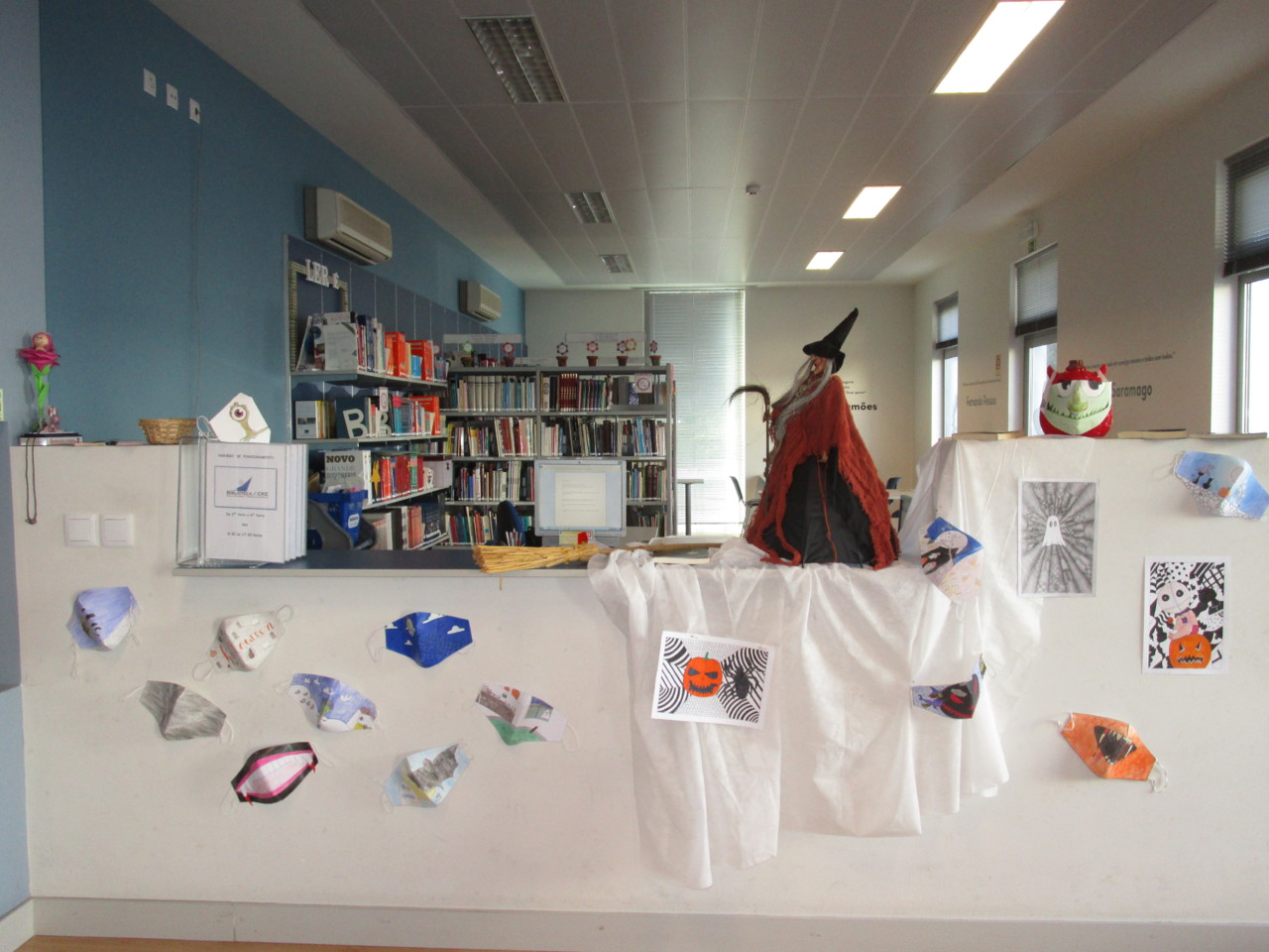 Pode ser apreciada uma exposição de trabalhos feitos por alunos do 8º D, intitulada “Halloween vs Texturas”.