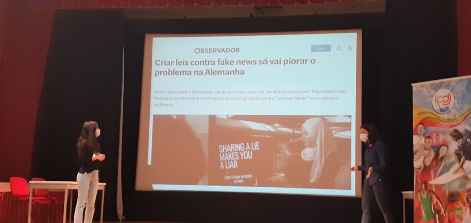 Foi com muito orgulho que assistimos à brilhante prestação das alunas Maria Branco e Matilde Almeida, do 11ºA, na prova distrital do Concurso Euroscola, realizada hoje, dia 5 de abril, no Instituto Português do Desporto e Juventude de Castelo Branco. A sua excelente abordagem do tema “As Redes Sociais e os perigos para a Democracia” permitiu-lhes vencer a sessão distrital do Concurso e, assim, poder concorrer, na sessão nacional, ao prémio de participação numa das sessões Euroscola no Parlamento Europeu.
