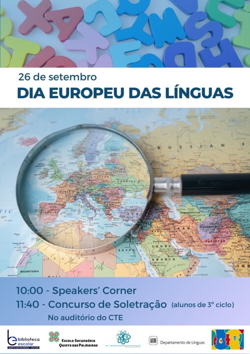 Hoje foi dia de comemorar o 22º aniversário do Dia Europeu das Línguas. Neste âmbito, o Departamento de Línguas organizou diversas atividades de sala de aula e de natureza mais alargada, que envolveu a participação de várias turmas no auditório do CTE da nossa escola. O grupo de inglês dinamizou mais uma sessão Speakers’ Corner sempre de grande agrado dos nossos alunos. Os alunos Mafalda Mingote e Sofia Fiadeiro (11ºD); Ana Júlia e Mara (12º A) e Joaquim e Martim Vicente (12ºB) foram os palestrantes, que apresentaram ao seu auditório, constituído por alunos de 10ºano de inglês e de um curso profissional, temas variados. A atividade foi do agrado de todos e saímos todos mais ricos em conhecimento e partilha.