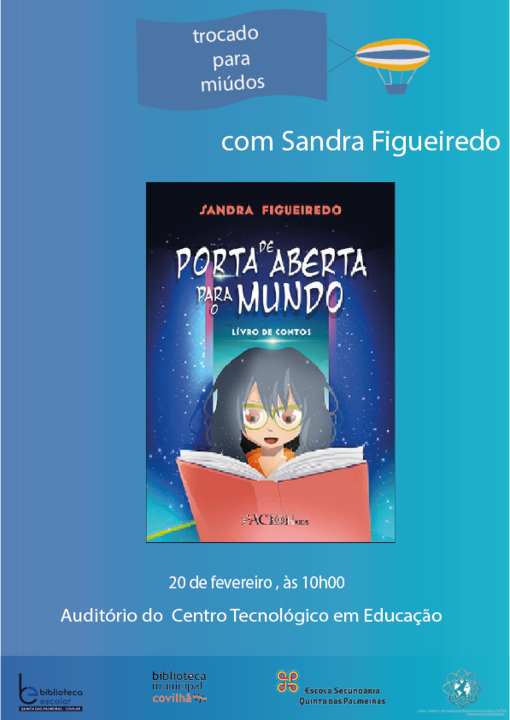 No âmbito da iniciativa “Trocado para miúdos”, recebemos hoje, na nossa escola, a autora do livro de contos “De Portas Abertas para o Mundo, Sandra Figueiredo, doutorada em Psicologia.