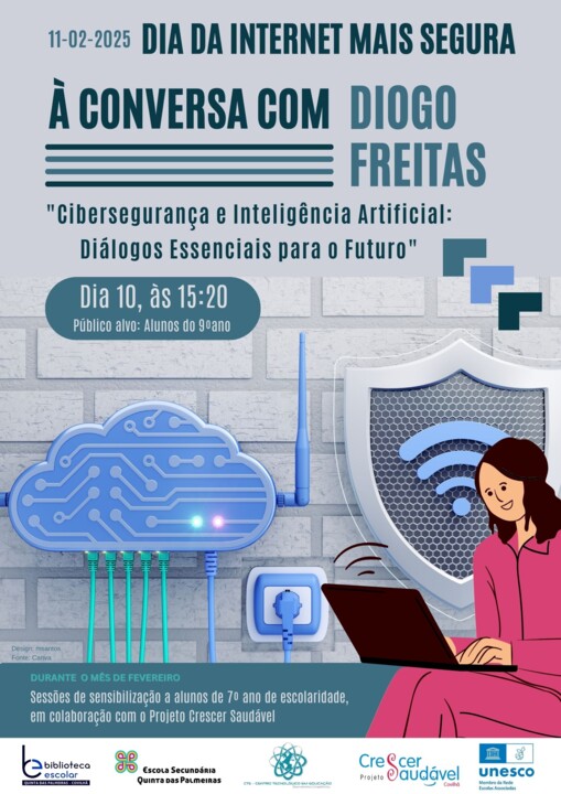Para assinalar o Dia da Internet + Segura, o autor do livro Inteligência Artificial, Benção ou Maldição Diogo Freitas, esteve na nossa Escola para, numa conversa informal, falar com alunos de nono ano de escolaridade sobre os desafios, vantagens e desvantagens da IA.